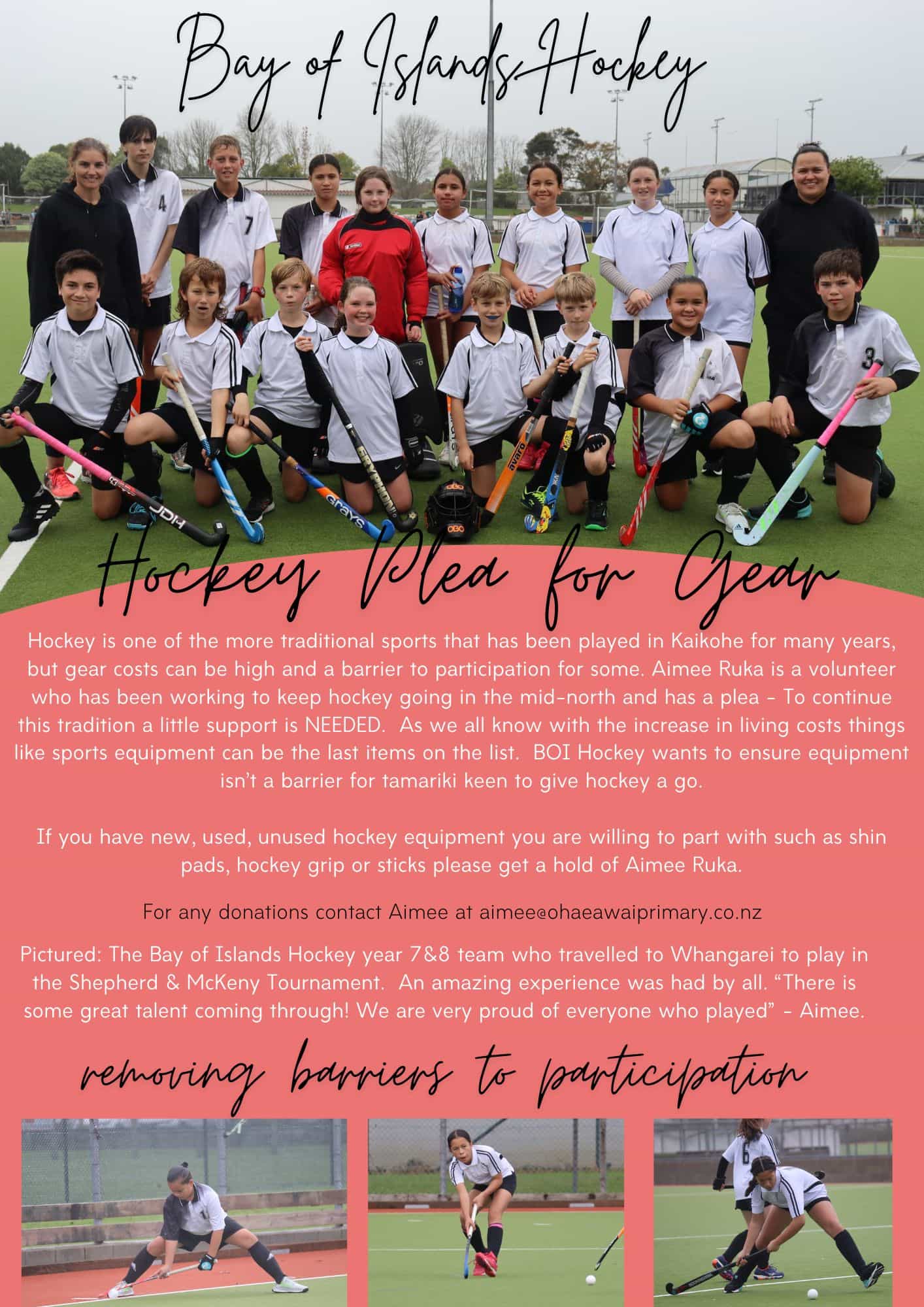 Can you help BOI Hockey reduce barriers for tamariki to play by donating unused hockey equipment?