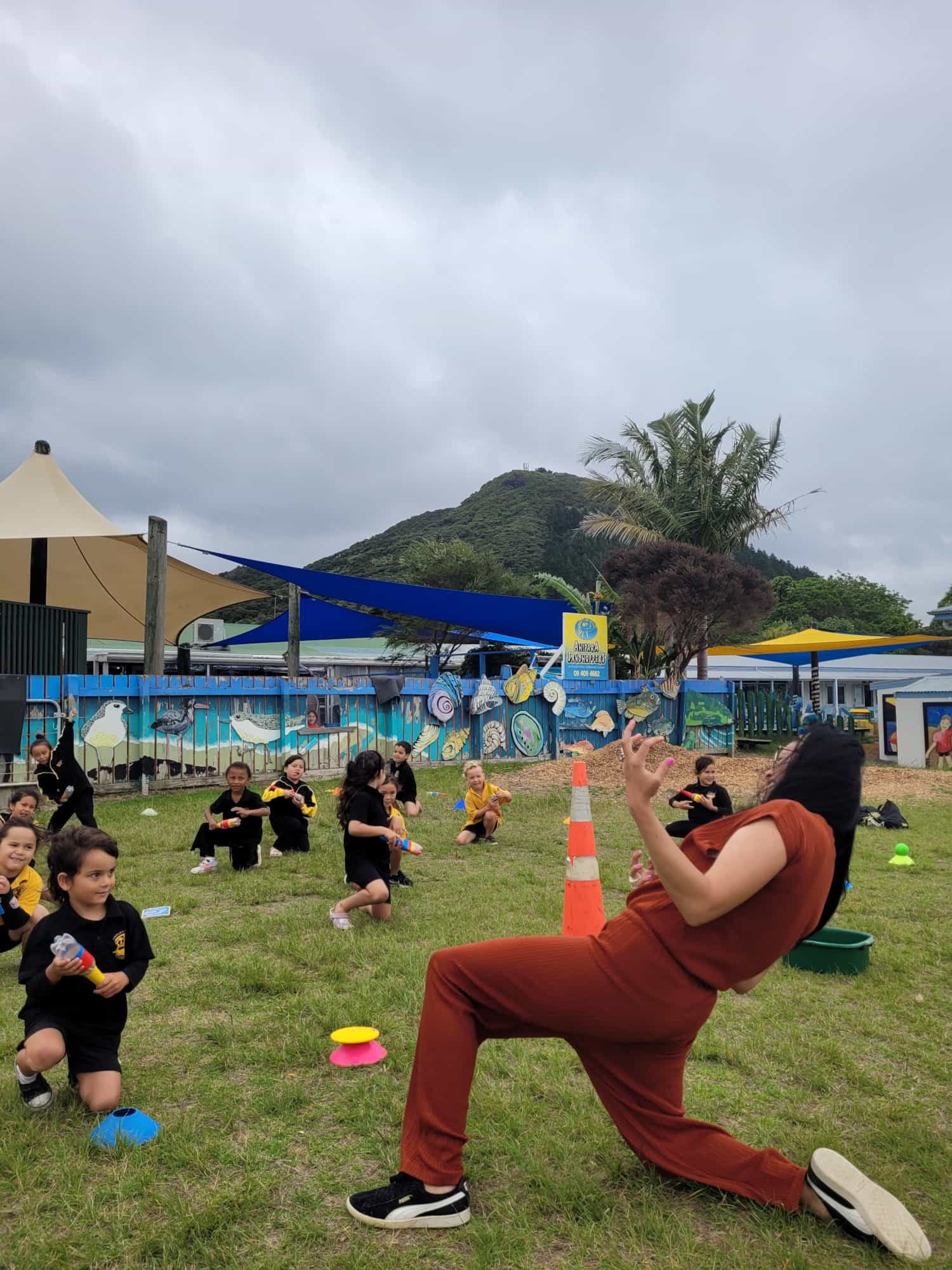 The proposal was approved and resulted in Adrienne working at Ahipara School every Tuesday for the full term, working closely alongside the School Connector. Together, they supported tamariki and kaiako through structured movement sessions, creative exploration, and performance preparation.
