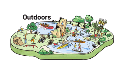 The active recreation domains (as illustrated above) shows how broad and diverse active recreation can be. It’s not just one sector or type of activity – it includes many different areas, which we call domains. Rangatahi may take part in activities across several domains, and these often connect and overlap.